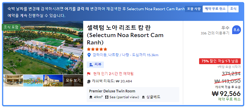 2020년에 새롭게 개장한 Selectum Noa는 고급스러움보다는 가성비에 초점을 맞춘 리조트입니다. 베트남의 현지 브랜드 리조트로, 숙박 기간 동안 아침, 점심, 저녁, 간식, 바, 알코올 음료를 무제한으로 제공하는 O-Ring Inclusive Will Plan으로 최고의 가성비를 즐길 수 있는 곳입니다.