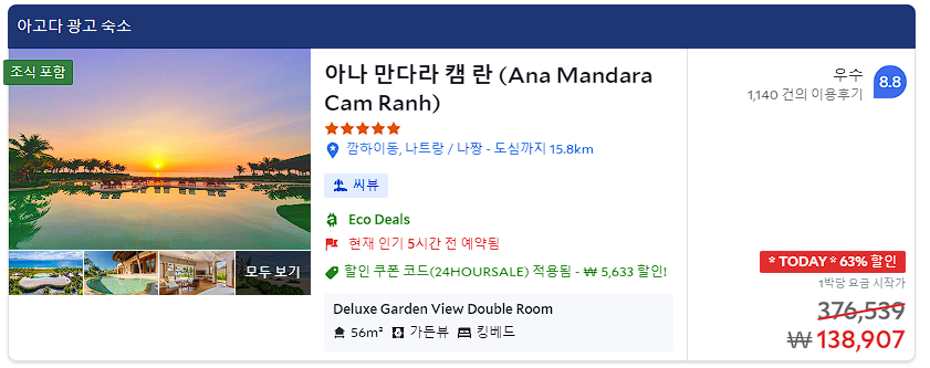 숙소가 공항과 가까워서 이용이 편리하고 늦은 시간에 공항에 도착했는데도 픽업도 가능해서 좋아요. 숙소도 깨끗하고 숙소내 부대시설도 알차게 구성되어 있어서 너무 좋습니다. 제일 좋은건 삼시세끼와 간식, 주류가 다 제공되는거에요. 아이들 데리고 해외가면 먹는게 제일 걱정인데 여기는 다 제공되고 부페식이라서 제일 맘에 듭니다. 아이들 있는 집은 백번 추천합니다. 다음에 나트랑 가게되면 여기 또 오고싶어요.