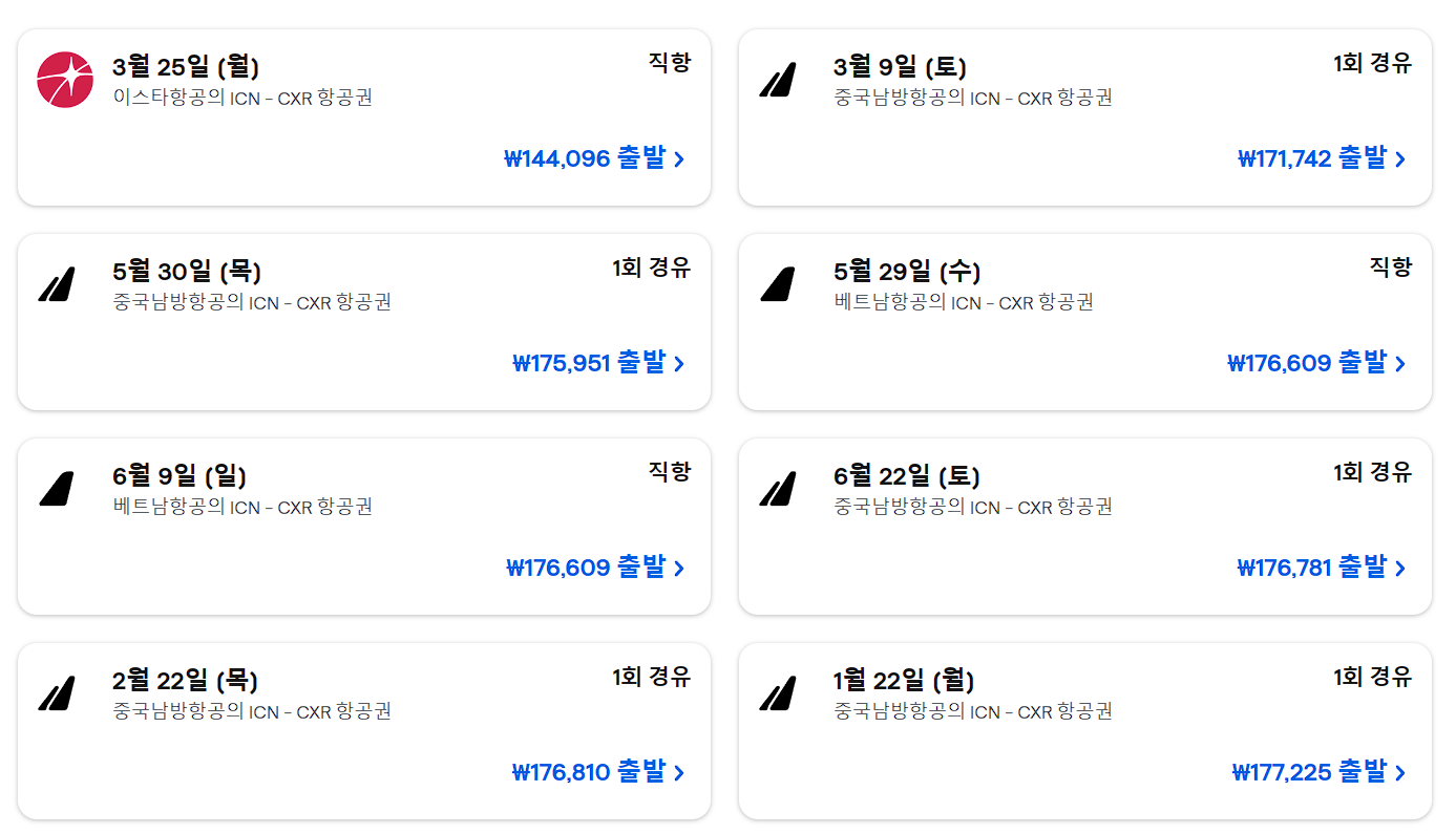 서울발 나트랑 항공권, 이스타항권이 제일 저렴