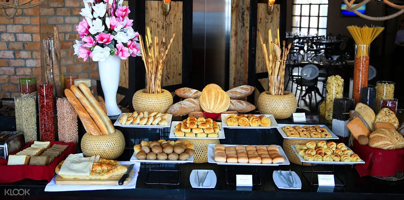 다낭 바나힐 뷔페 레스토랑에서 100여 종류의 음식을 맛볼 수 있습니다.