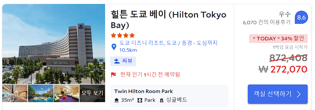 다음에 디즈니씨나 랜드를 간다면 힐튼도쿄베이를 또 이용하고 싶습니다.