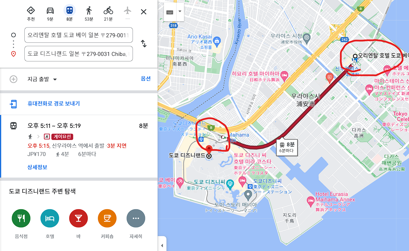 - 도쿄 디즈니랜드까지 교통수단과 비용.