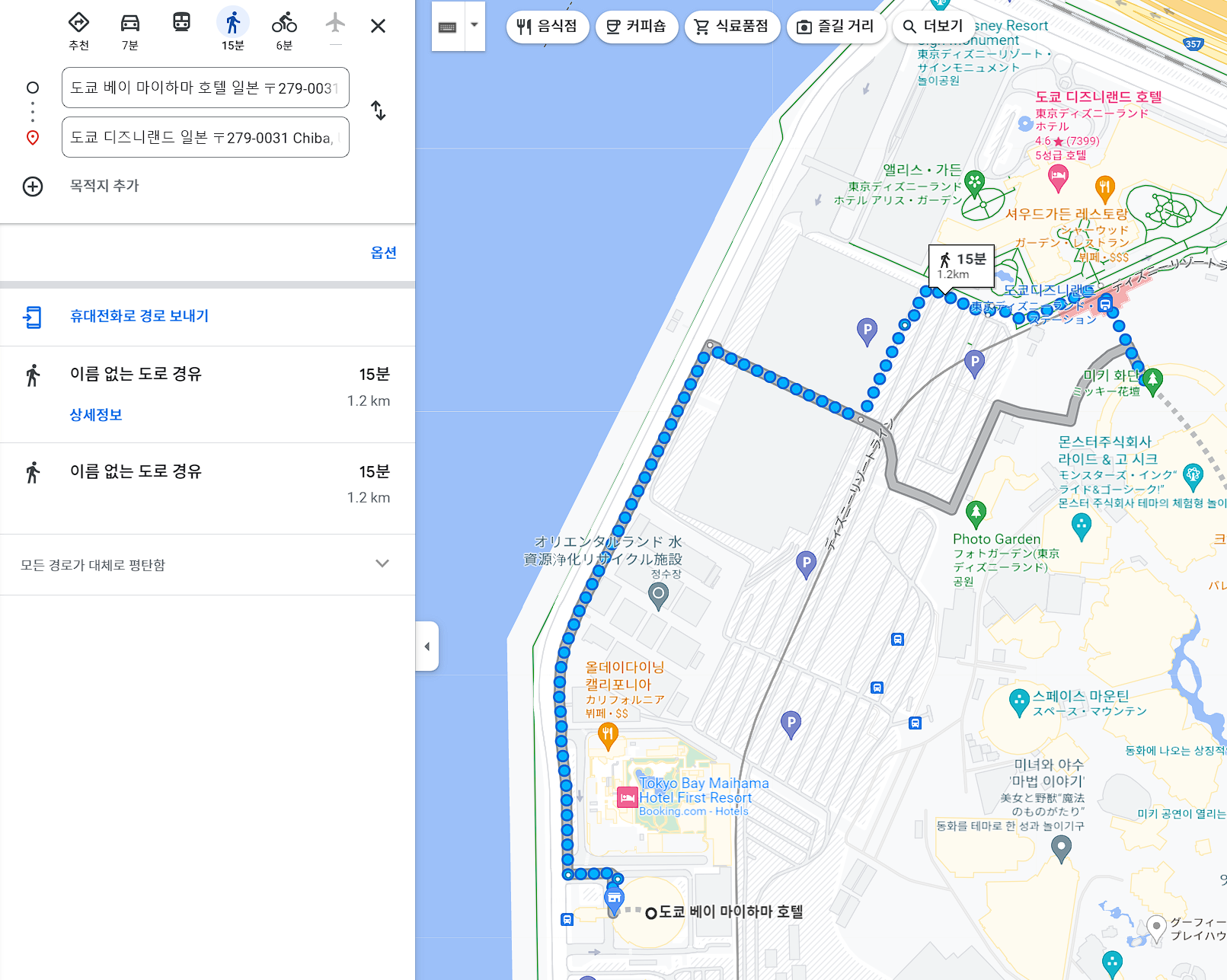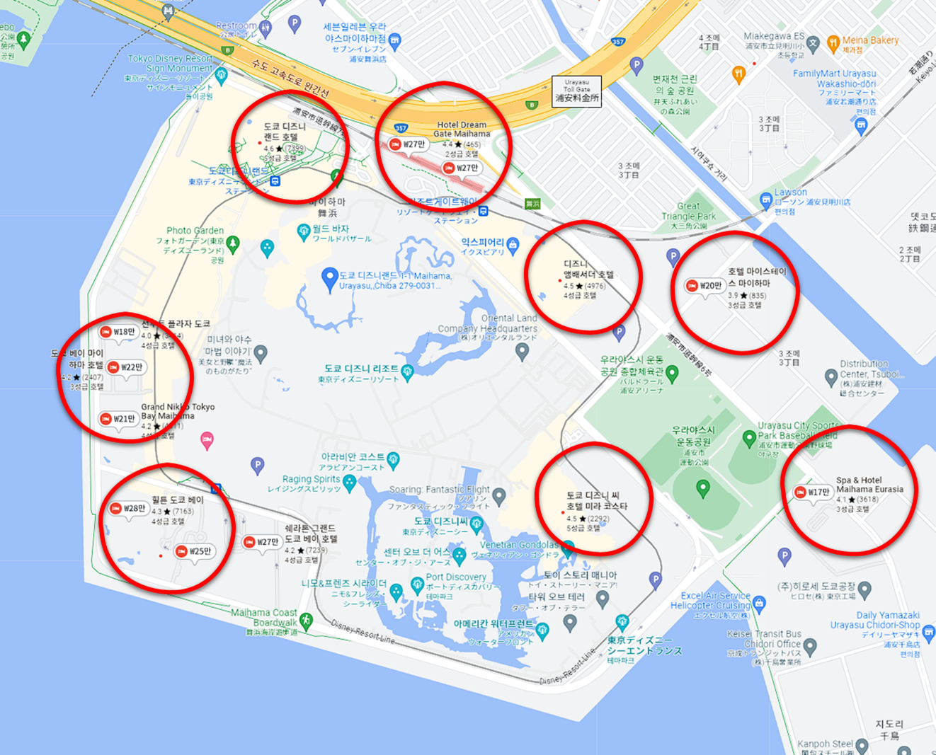 - 도쿄 디즈니랜드까의 거리 : 도보로 약 15분, 모노레일로 약 5분