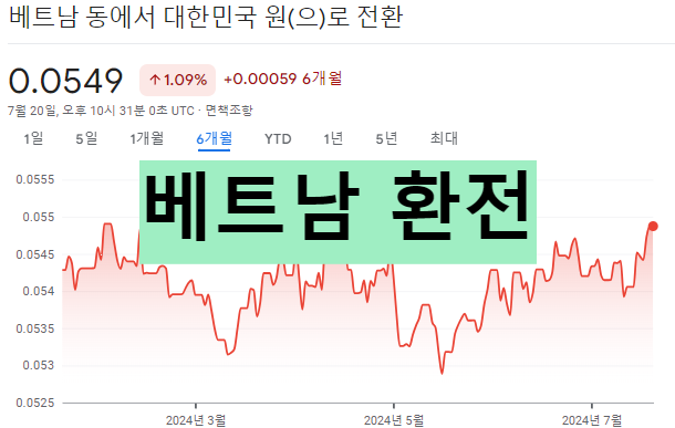이 데이터를 보면, 베트남 환율이 약간의 등락은 있었지만 비교적 안정적으로 유지되고 있음을 알 수 있습니다. 베트남 경제의 꾸준한 성장이 동화 가치의 안정에 기여하고 있는 것으로 보입니다.