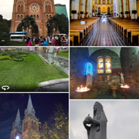 프랑스 통치 시대의 고딕 양식의 교회를 견학