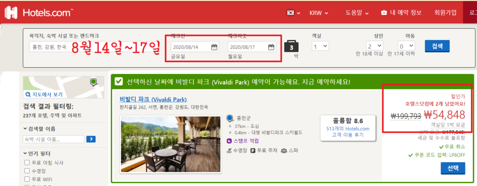 소노벨 비발디파크, 후기와 할인코드를 활용해서 할인된 가격으로 예약을 해보도록 하죠.
