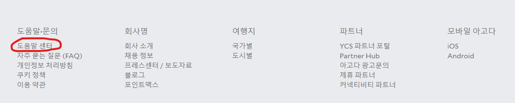 1. 아고다 홈페이지로 접속 --> 화면 맨 아래 도움말센터 링크 클릭