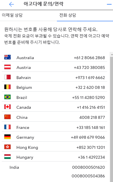6. 현재 내가 있는 국가의 아고다 고객센터 전화번호 확인 후 전화하기
