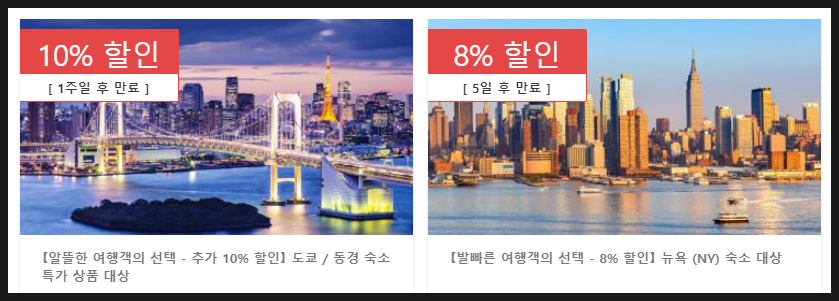 2020년 아고다 1월 할인코드 정리 1. 태국 전 지역 2020년 1월 기간한정 5% 할인코드 • 할인코드 사용기간: 2020년 01월 31일까지 • 5% 할인코드(태국): AGD2001M106 • 할인코드 사용방법: 여기 클릭 후 베트남 지역에서 원하는 숙소를 검색한 뒤 할인코드를 적용하면 된다. 꼭 여기를 클릭해야 위 할인코드가 적용가능합니다. 2. 뉴욕, 끄라비(크라비), 서울, 동경, 런던, 각 지역 전용 할인코드 : 지역별로 기간이 한정된 할인코드가 제공되므로 예약기간에 맞춰서 할인코드 적용하자 ▶ 아래 할인코드 사용방법: 여기 클릭 후 원하는 지역 숙소 예약한 뒤 할인코드를 입력한다. • 뉴욕 호텔 8% 할인코드 : NEWYORK (~2020년 1월 사용가능) • 동경 호텔 10% 할인코드 : TOYKYO (~2020년 1월 사용가능) • 끄라비 호텔 5% 할인코드: KRABI (~2020년 1월 사용가능) • 서울 호텔 5% 할인코드: SEOUL (~2020년 1월 사용가능) |