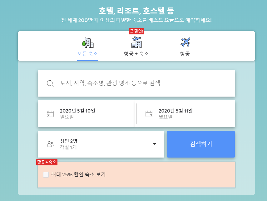패키지(항공권+숙소) 상품을 예약하신 경우 예약하신 숙소와 관련해 별도의 이메일이 전송되오니 확인해 주시기 바랍니다. 숙소 예약에 대한 취소 요금 면제 정책은 항공권 예약에 대한 취소 요금 면제 정책과는 다를 수 있음을 알려드립니다.