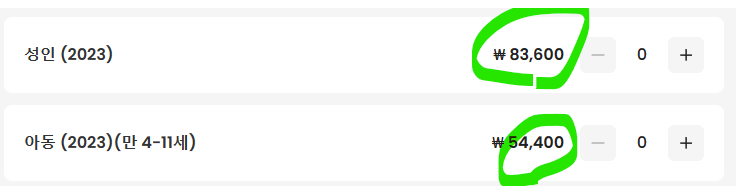 오사카 유니버셜 스튜디오 재팬 입장권의 2023년 입장권이 성인과 아동이 각각 2,000원이 인상 되었어요