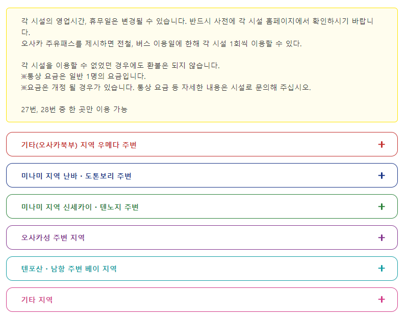 오사카 주유패스로 이용할 수 있는 시설