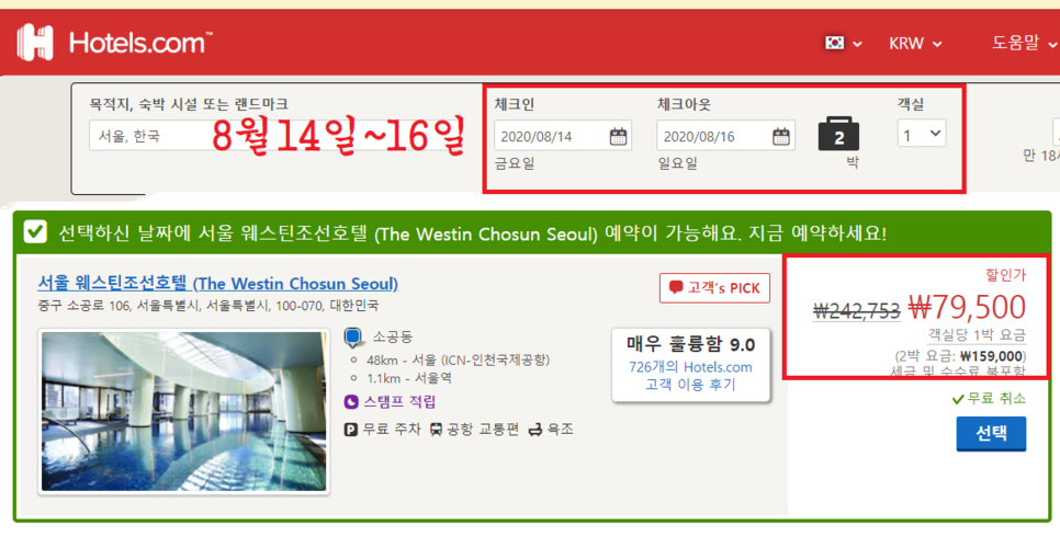 이링크롤 통해 이동하셔야 웨스틴조선호텔 서울의 할인을 받으실 수 있습니다.