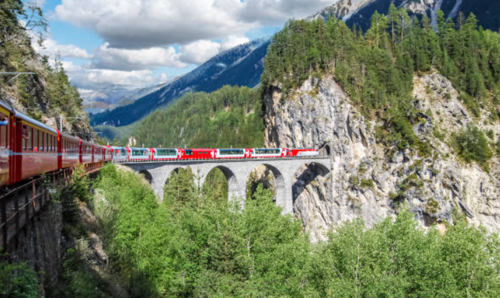 스위스의 글래시어 익스프레스는 스위스에서 가장 유명하고 인기있는 관광 열차입니다. 이 열차는 생모리츠와 체르마트를 연결하는 약 7.5시간의 여정을 제공하며, 스위스 알프스의 아름다운 풍경을 파노라마 창문을 통해 감상할 수 있습니다. 이 열차는 빙하특급이라고도 불리며, 고속 열차가 아니라 느림의 미학을 추구하는 열차입니다. 이 열차는 91개의 터널과 291개의 다리를 건너며, 최고 고도인 오버알프 고개에서는 2,033m까지 올라갑니다.