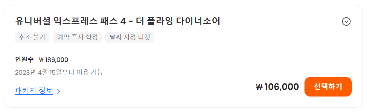 - 유니버셜 익스프레스 패스4 : 리미티드: 65,400원~ 152,100원