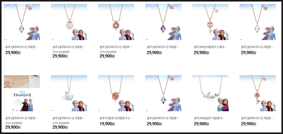 그 중에서 클루 겨울왕국 귀걸이, 목걸이 등이 엄청난 인기를 누리고 있습니다.