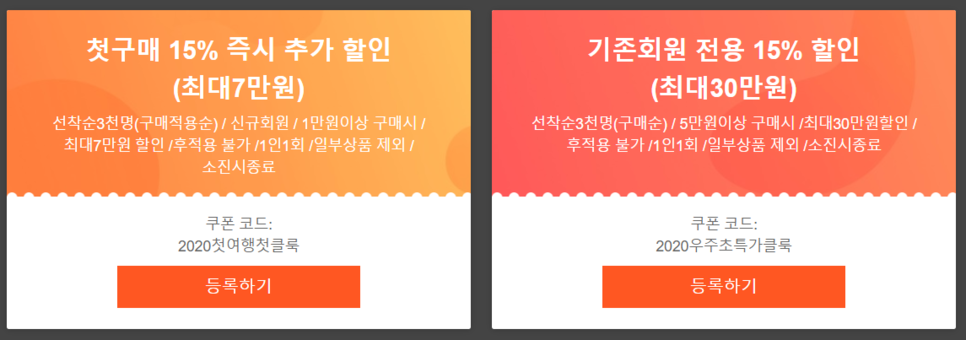 1. 신규 회원용 15%, 최대 7만원 할인코드