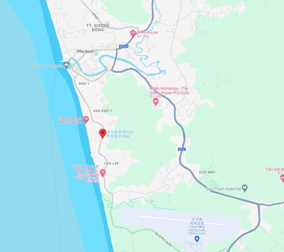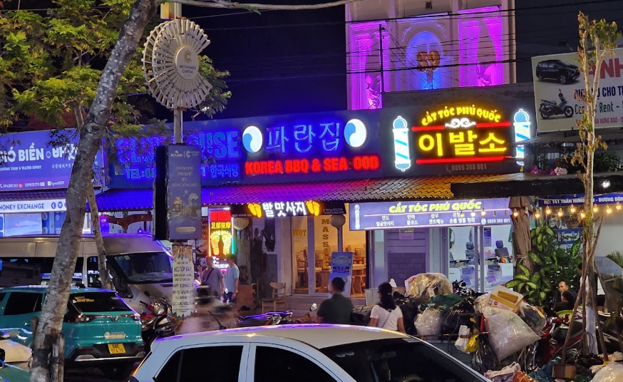 푸꾸옥의 여행자거리에 위치한 한식당 파란집 입니다.