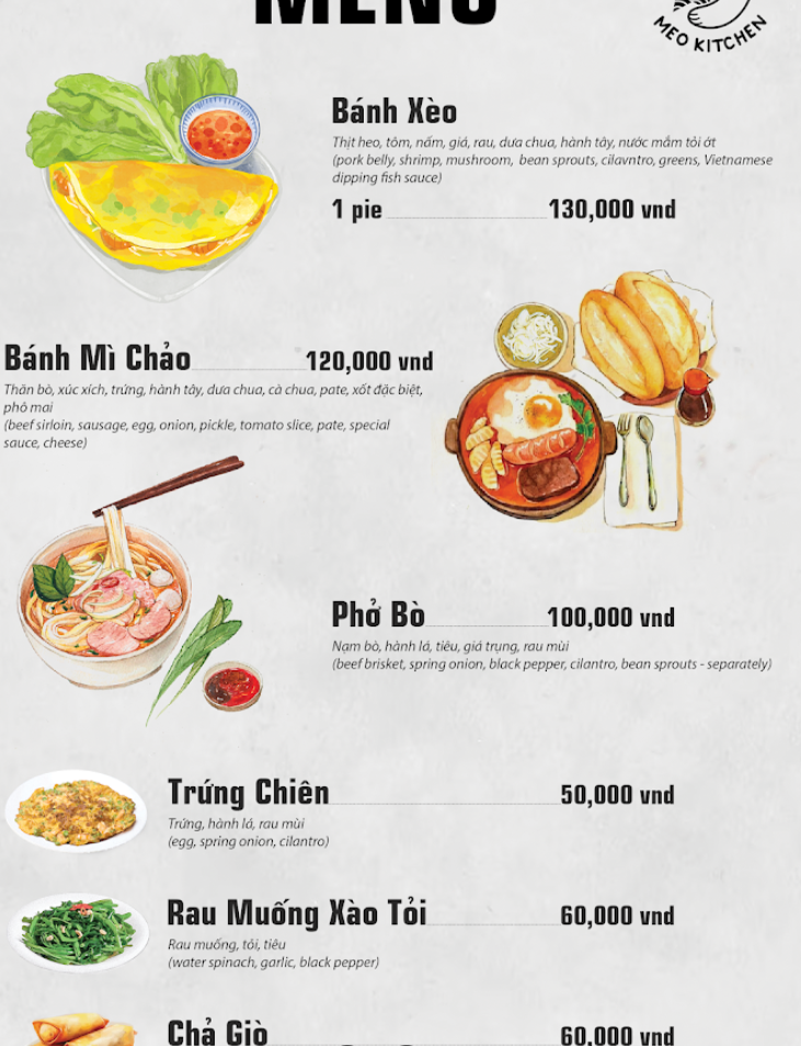 특징: 이곳은 베트남 현지식을 제공하는 맛집으로 반쎄오와 반미가 특히 인기 있는 메뉴입니다. 반쎄오는 바삭한 외피와 부드러운 내부가 어우러진 베트남식 크레페로, 각종 야채와 함께 먹으면 그 맛이 배가됩니다. 반미는 신선한 재료와 특유의 소스가 어우러져 베트남을 대표하는 샌드위치로, 여행자들 사이에서도 인기가 높습니다. 깔끔한 내부와 친절한 서비스로 기분 좋은 식사를 할 수 있는 곳입니다.