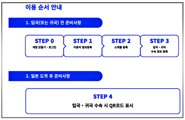 Visit Japan 앱에 가입하고 사용자로 등록할 수 있습니다. 마지막 로그인 후 1년 반이 지나면 계정이 사라지므로 주의해야 합니다. 비행 및 숙박이 확정된 후에 작성할 수 있습니다. Visit Japan 앱의 등록은 일본 입국 전에 완료할 수 있습니다.