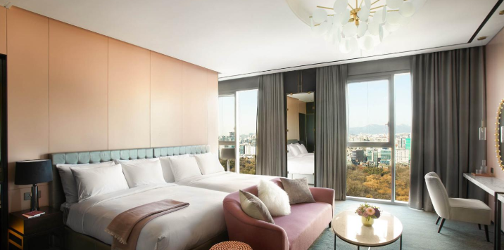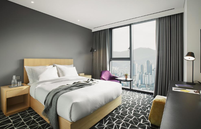 총 330개의 호텔 객실에서는 초고속 유/무선 인터넷을 무료로 이용하실 수 있습니다. 객실에는 43” UHD 텔레비전과 사무용 데스크, 금고, 냉장고, 비데 등이 갖춰져 있습니다. 1회용 칫솔 및 치약과 욕실용품, 욕실가운 등 비품도 구비되어 있습니다.