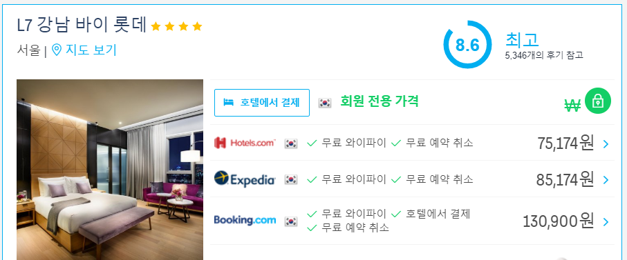 일단 이곳에서 예약하며 요청사항을 적어두었는데 제대로 전달이 안되었다고합니다. 그래서 다시한번 요청사항을 요구하였는데 응대가 미숙하신분이 응대하셔서 그런건지 제대로 캐치를 잘 못하시는듯했습니다. L7 강남 바이 롯데에 체크인하는데에 시간도 좀 걸렸습니다. 뷰는 맘에듭니다. 슈페리어룸에 욕조가비치되어있으나 뷰를포기해야합니다. 층수가 중층일경우 앞에 건물과 맞닿아있습니다. 고층이어야 조금 시야가 트이는 느낌. 슈페리어는 건물기준 양사이드에 배치되어있습니다. 스탠다드룸과 스위트룸만이 선정릉뷰나 시키뷰로 배정받습니다. L7 강남 바이 롯데의 청결도는 대략 괜찮은 편입니다. 침구도 푹신한편입니다. 물의수압도 좋습니다.